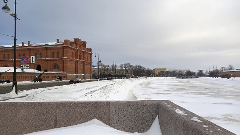 Парапеты набережной Невы одели в карельский камень рапакиви
