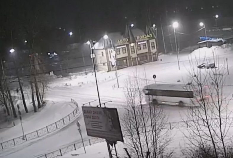 Момент наезда автобуса на пешехода в Кондопоге попал в объектив камеры наблюдения компании CityLink.