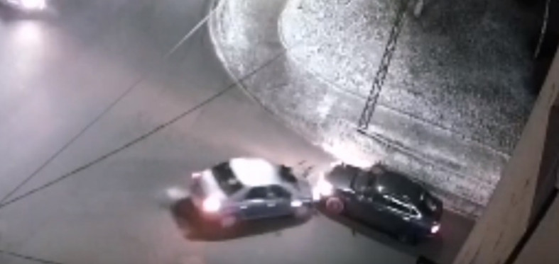 Одна из машин выезжала на перекресток со стороны набережной Гюллинга и остановилась для пропуска пешехода. В этот момент другой автомобиль заворачивал с Луначарского на Гюллинга. Легковушка сбила пешехода – человек оказался на капоте и влетела в остановившуюся машину. В итоге пешеход очутился на капоте второго авто, прокатился по нему и оказался на своих двоих. // фото: скриншот видео