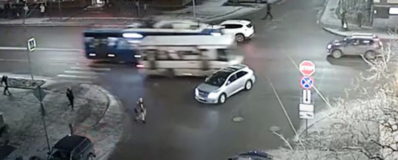 На проспекте Ленина автобус задел троллейбус, инцидент запечатлели камера наблюдения и видеорегистратор