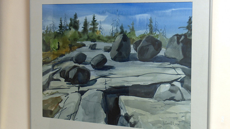 Карельский акварелист Владимир Лобанов занял своими работами почти все крыло 2 этажа главного здания университета