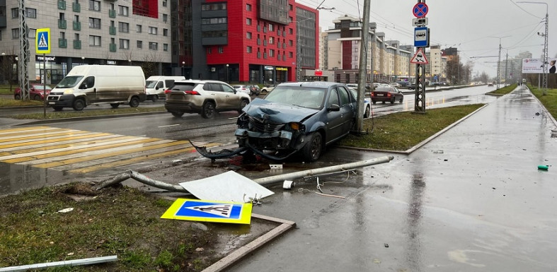 Утром 12 ноября иномарка на полном ходу врезалась в стойку дорожного знака в Петрозаводске. Кадры опубликовали в группе «ДТП Петрозаводска и Карелии» ВКонтакте.