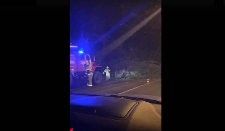В кадре видно, что на месте ЧП работают пожарные. Судя по всему, они успели отпилить верхушку елки, чтобы облегчить проезд автомобилистам.