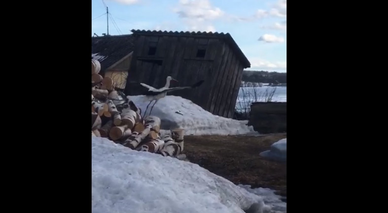 Крылатого гостя видели в один день в двух населенных пунктах Медвежьегорского района, пользователи соцсети назвали прилет аиста добрым знаком
