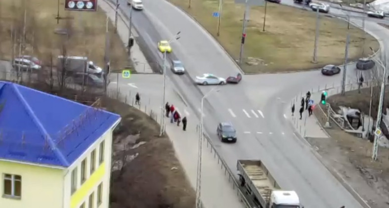 Камера наблюдения сняла дорожный инцидент на верхнем Чапаевском кольце в Петрозаводске