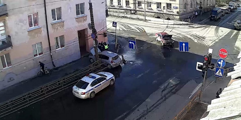 Дорожная авария произошла 11 апреля в 14:35. Один из автомобилей двигался по проспекту в сторону Онежского озера. Другой в это время ехал по улице Луначарского со стороны Пименовского моста. Момент аварии запечатлела камера наблюдения «Сампо.ру», запись опубликовал паблик «Подслушано у водителей Птз и Карелии».