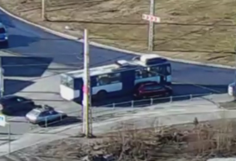 В Петрозаводске на верхнем Чапаевском кольце троллейбус попал в ДТП. Инцидент произошел в 8:45 в понедельник, 11 апреля, и попал в объектив камеры наблюдения компании CityLink.