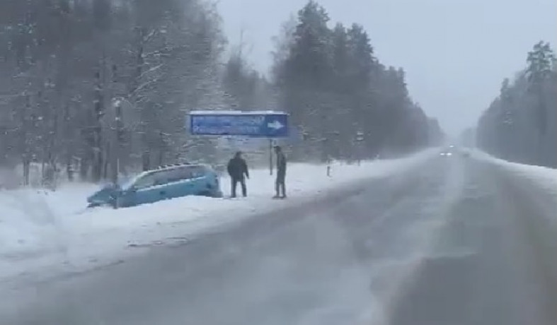 На заснеженной трассе «Кола» в Кондопожском районе 12 декабря произошло ДТП. Легковой автомобиль слетел с проезжей части и оказался в кювете.