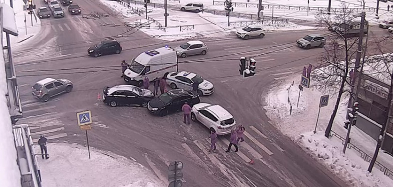 На пересечении Гоголя и Красноармейской улицы в Петрозаводске сегодня утром произошла групповая авария.