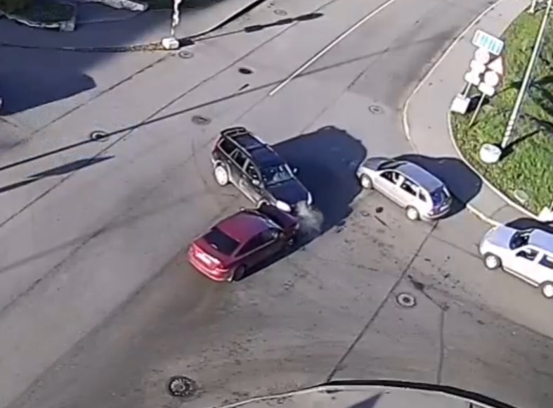 Дорожный инцидент на Лососинском шоссе попал в объектив уличной камеры наблюдения