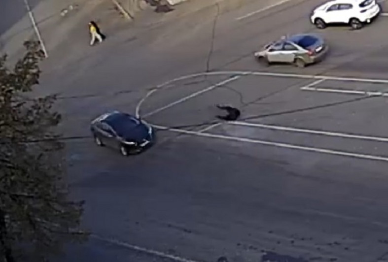 В воскресенье в 12:26 в Петрозаводске на проспекте Ленина автомобиль сбил велосипедиста. Инцидент попал в объектив камеры наблюдения компании CityLink.