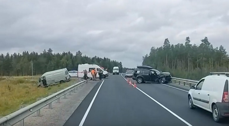 Авария с пострадавшими произошла на федеральной трассе «Кола» в Сегежском районе. Судя по кадрам очевидца, опубликованным в паблике «Подслушано у водителей Птз и Карелии», на трассе столкнулись внедорожник и фургон.