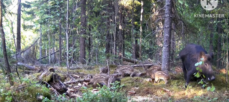 В Карелии продолжают показывать зарисовки из жизни семейства кабанов