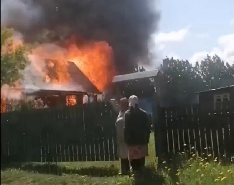 Очевидцы сняли пожар на видео. Полыхает деревянный жилой дом. На месте работают несколько пожарных бригад.