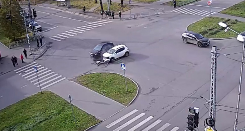Момент столкновения на перекрестке улицы Московская и Октябрьского проспекта запечатлела камера CityLink. Видеозапись опубликовал паблик «Подслушано у водителей Птз и Карелии».