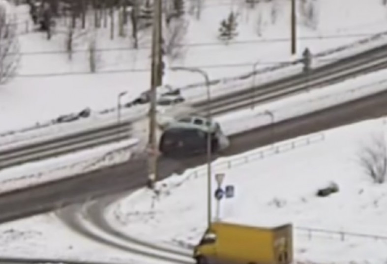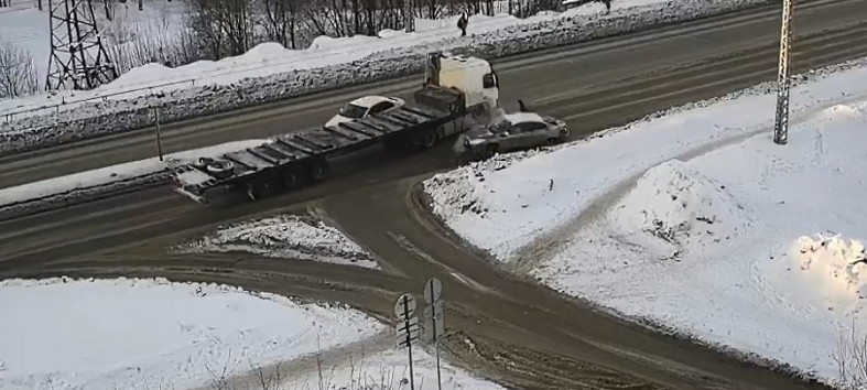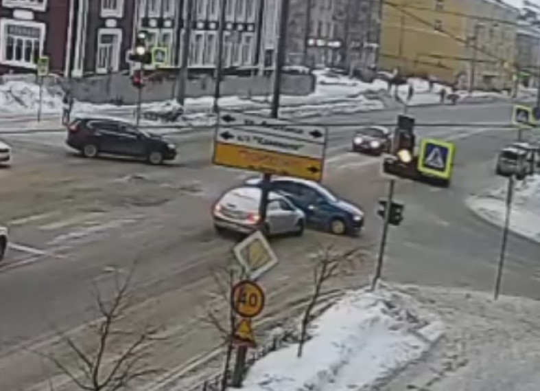 Сегодня в 10:01 в Петрозаводске на пересечении проспекта Ленина и улицы Анохина произошло ДТП. Инцидент попал в объектив камер наблюдения компаний Sampo.ru и CityLink.