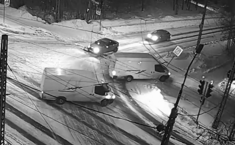 Ночью в субботу, 15 января, в Петрозаводске, на пересечении улицы Московской и проспекта Первомайского произошло ДТП. Инцидент попал в объектив камеры наблюдения компании Sampo.ru.