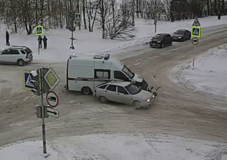 Днем 13 января в Кондопоге произошло жесткое ДТП с участием автомобиля скорой помощи. Инцидент попал в объектив камеры наблюдения компаний Sampo.ru и CityLink.