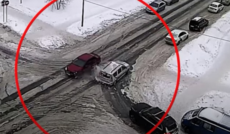 На перекрестке улиц Кирова-Свердлова произошла групповая авария. Все случилось 16 января в 10:49 и попало в объектив камер уличного наблюдения «Сампо.ру» и CityLink.