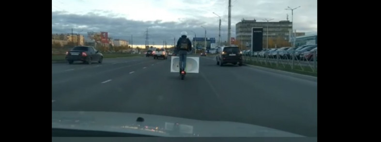 Регистратор автомобилиста заснял, как водитель электросамоката перевозит бытовую сантехнику в Петрозаводске