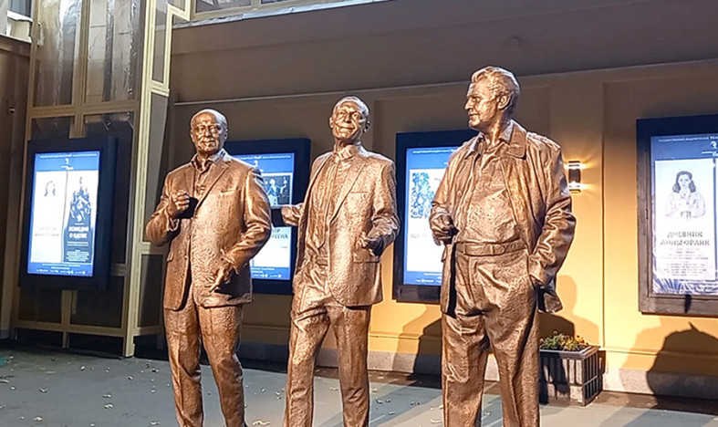 Великие вахтанговцы Василий Лановой, Владимир Этуш и Юрий Яковлев застыли на Арбате в золотых скульптурах, а на малой сцене их театра сейчас идет спектакль о событиях в Карелии на Ладожском озере.