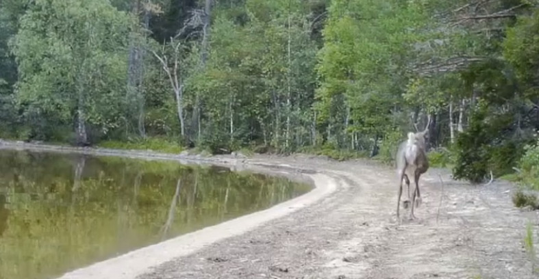 Кадры с видеоловушки, на которых запечатлена самка северного оленя, появились в социальной сети