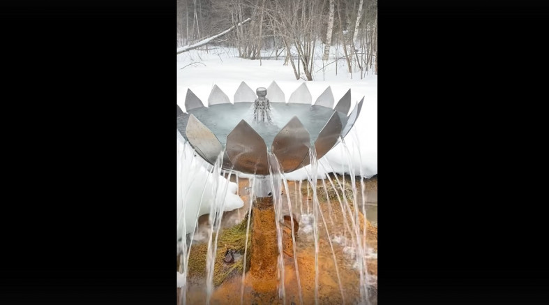 Напомним, чаша фонтана простояла почти 50 лет, но со временем металл проржавел и в итоге она рухнула. Восстанавливать помогал сварщик дядя Коля. // видео VK-паблик «Зимние фонтаны Петрозаводск»