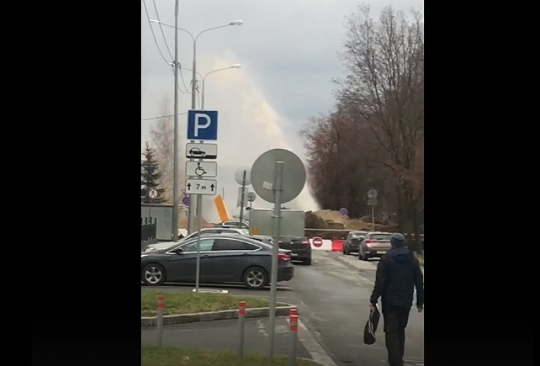 Вероятно, при реконструкции улицы Куйбышева техника повредила коммуникации, в результате чего на метры в высоту забила струя воды. Автор видео предположил, что у кого-то сегодня не будет воды.