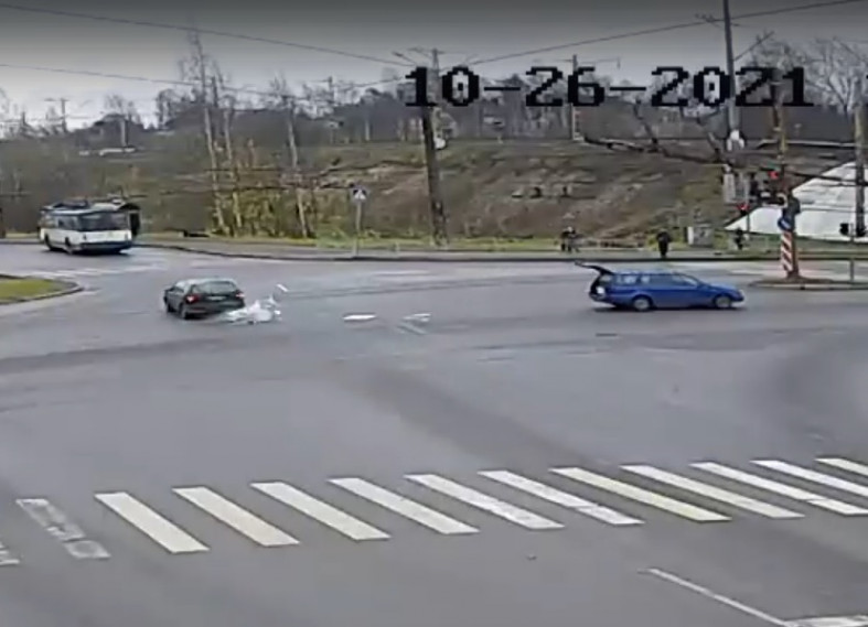 Городская камера наблюдения сняла инцидент на перекрестке четырех дорог