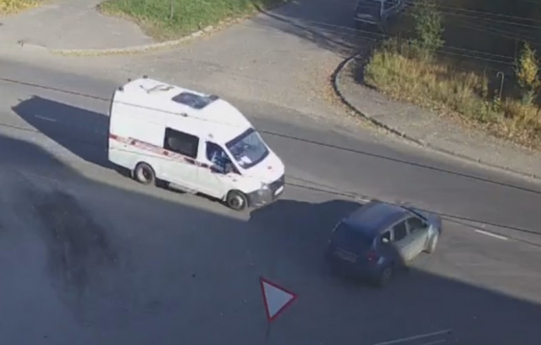3 октября в Петрозаводске на улице Ригачина произошло ДТП с участием автомобиля скорой помощи. Инцидент попал в объектив камеры наблюдения компании Sampo.ru.