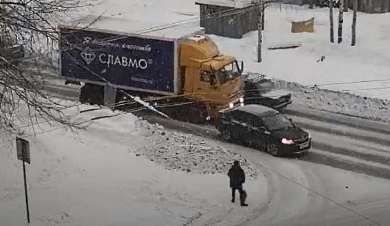 Городская камера наблюдения сняла жесткое ДТП в карельской столице