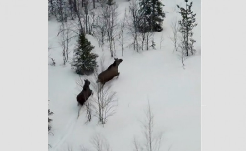 В Кольском Заполярье семейство сохатых запечатлел житель Мурманска Максим Немченко с помощью дрона. Он поделился завораживающим роликом, снятым в 200 км от Мурманска в лесах близ Финляндии, с подписчиками в «Инстаграм».