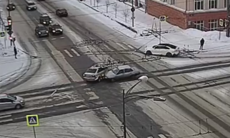 Сегодня в 16:19 в Петрозаводске произошло ДТП на пересечении проспекта Ленина и улицы Антикайнена. Инцидент попал в объектив камеры наблюдения компании CityLink.