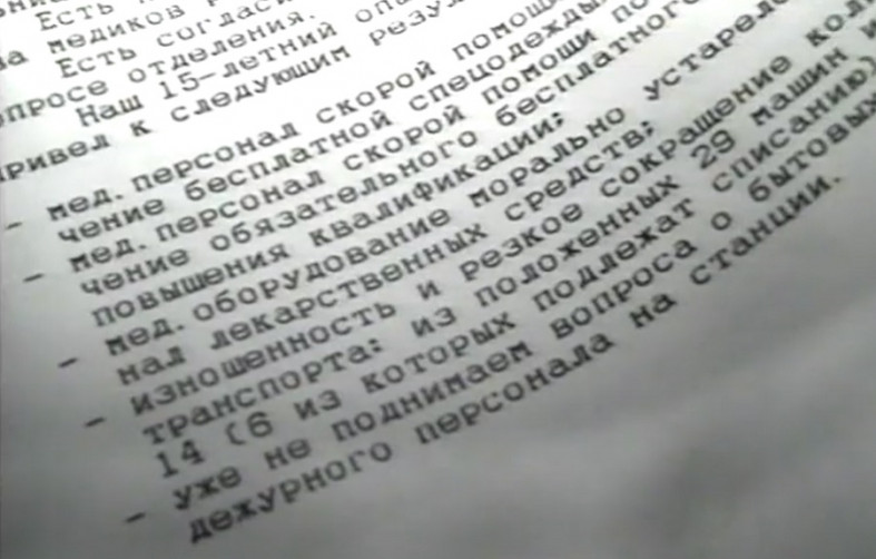 Коллектив станции считал, что пятнадцать лет назад, до объединения с городской больницей, им работалось лучше. Как следовало из письма председателю правительства, станцию финансировали по остаточному принципу. Денег в итоге не хватало ни на что. Персонал не получал спецодежды, медицинское оборудование устарело, не хватало лекарств. Но самое печальное – страдали пациенты.