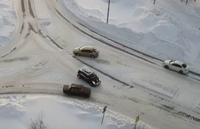 Сегодня в 16:59 в Костомукше произошла авария на одном из перекрестков. Инцидент попал в объектив камеры наблюдения компании CityLink.