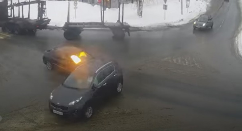 Кроссовер выезжал на перекресток с второстепенной дороги. В этот момент другой автомобиль двигался по главной дороге со стороны Ключевой. Возможно, водитель кроссовера не заметил приближавшийся автомобиль из-за лесовоза.