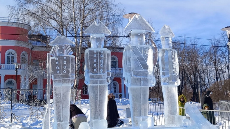 «Во льду» на фестивале ледовых скульптур, посвященных 350-летию Петра I, работала единственная женская бригада